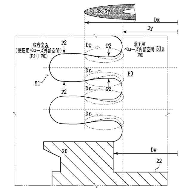 圧力調整弁には、微小な圧力変化に対して、高い応答性を持たせるために、感圧用ベローズを備えるものがある。