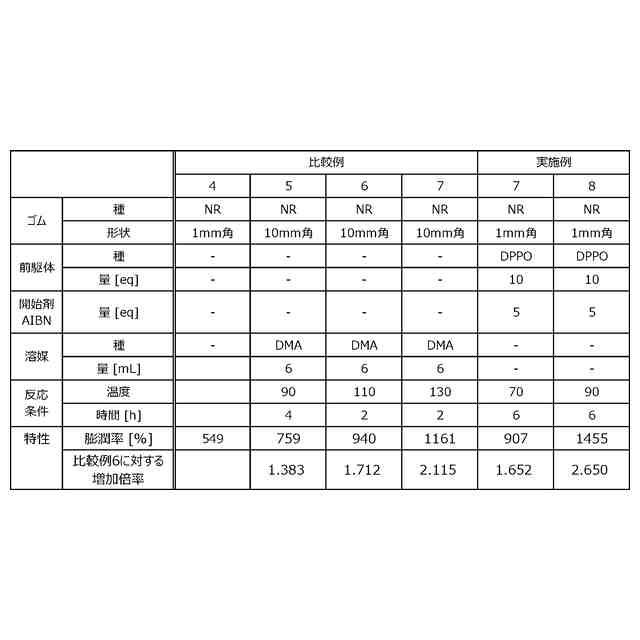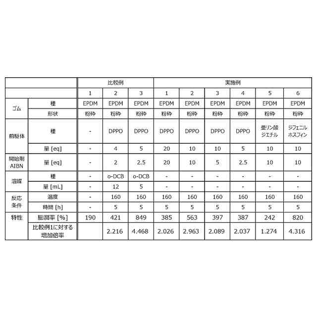 しかしながら、せん断脱硫は、ゴム主鎖(S-S、C-S結合以外)の切断による物性低下(低選択性)が課題とされており、再生脱硫ゴムを新品原料ゴムと同じ状態にまで戻すことは現状困難である。また、高温条件下での脱硫となる。