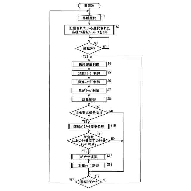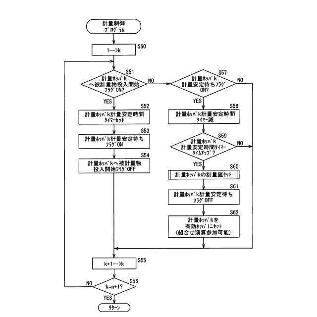 この組合せ演算によって選択された適量組合せの計量ホッパから物品をそれぞれ排出し、排出された所定重量範囲の物品を集合ホッパに一時貯留し、包装装置からの物品排出要求信号によって包装装置へ排出するように構成されている。