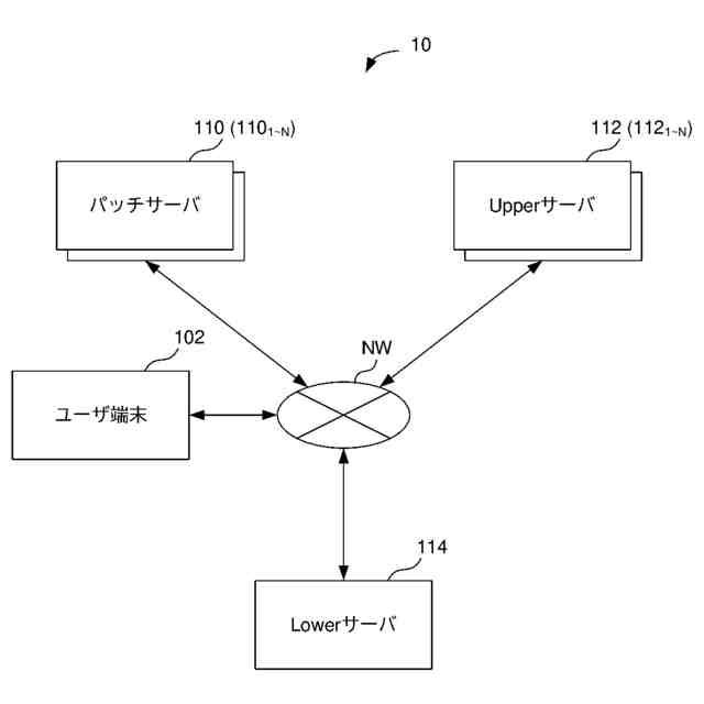 図1において、情報処理システム10は、ユーザ端末102と、複数のパッチサーバ110(110