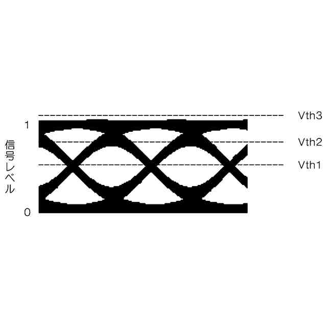 しかしながら、PAM4信号では信号のpeak-to-peak電圧に対し信号レベル0,1,2,3が均等に分布しているとは限らず、また例えば信号レベル3と信号レベル2のちょうど中間がVth_Upperとして最適とは限らないため、推定に誤差が生じる場合があるといった課題があった。また、この手法ではデジタル値が飽和する領域を求めるために閾値電圧Vthを掃引する必要があることから、リアルタイムに推定する用途には使用できないという課題があった。
