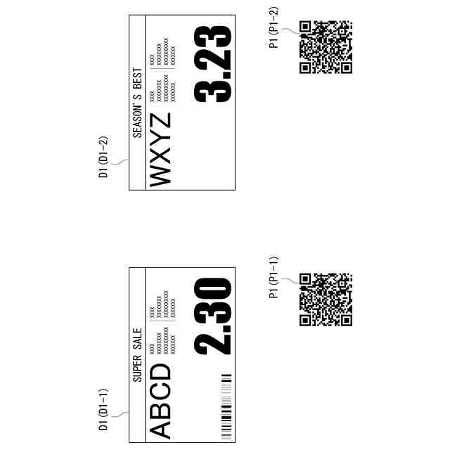 第1表示データD1とこの第1表示データD1に基づく固有パターンP1とを例示する説明図である。