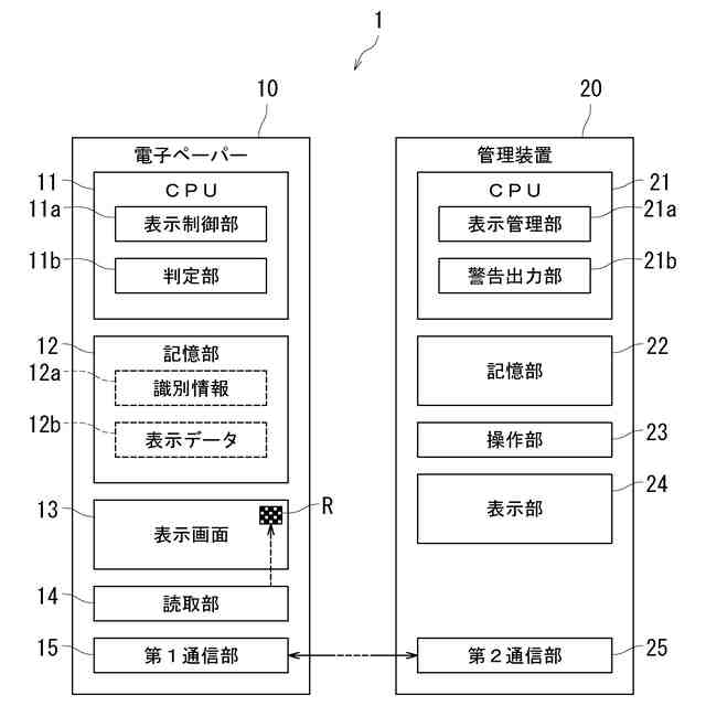 本開示の第1実施形態に係る電子ペーパー10を管理する電子ペーパー管理システム1の機能的構成を示すブロック図である。