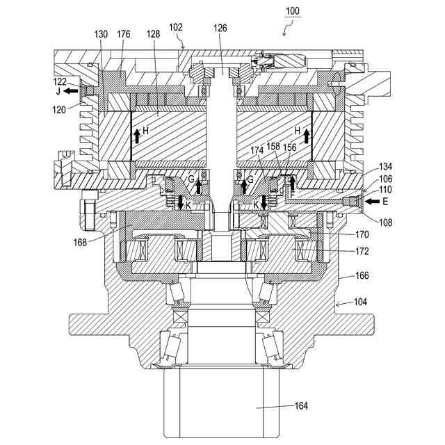 上記の電動機は、ハウジングに固定されたステータと、電流が印加されるとシャフトとともに回転するロータとを有し、作動油は、ロータとステータの隙間を通って電動機内を通過して排出ポートから排出されることが好ましい。