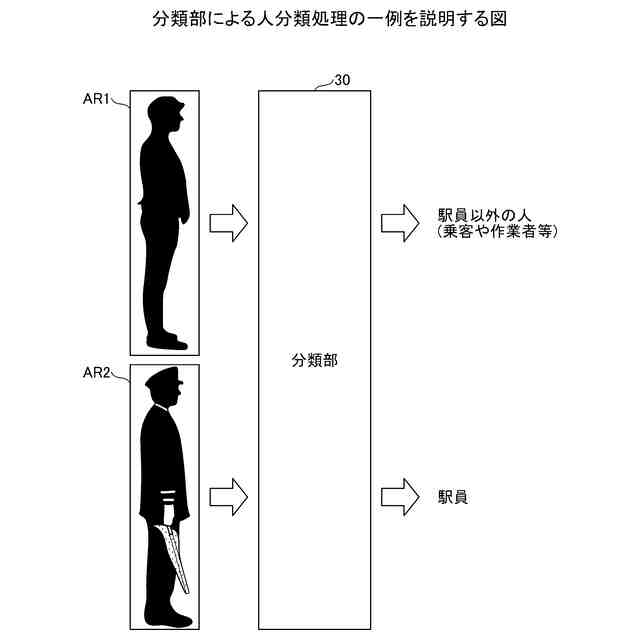 前記所定の基準は、前記検出部により検出される人が前記分類部により駅員に分類される場合、駅員とは異なる他の種類の属性に分類される場合よりも前記第2の状態と前記判定部により判定されにくくなるように規定される、