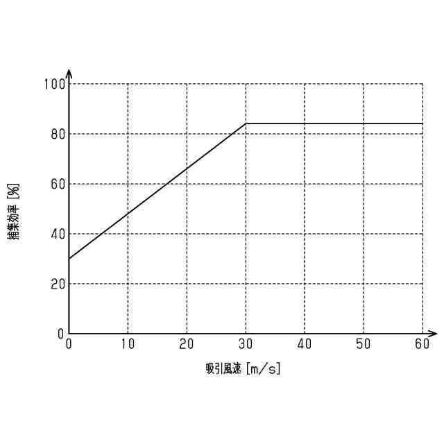 吸引通路のスリット孔に吸引される空気の流速(以下、吸引風速)が30m/s未満においては、吸引風速の増大に伴って、吸引風速の増大に伴って帯電後の濾材が大気中の塵埃を捕集する効率(以下、捕集効率)が大きくなる。また、吸引風速が30m/s以上においては、吸引風速が増大しても大気塵効率はほとんど大きくならない。