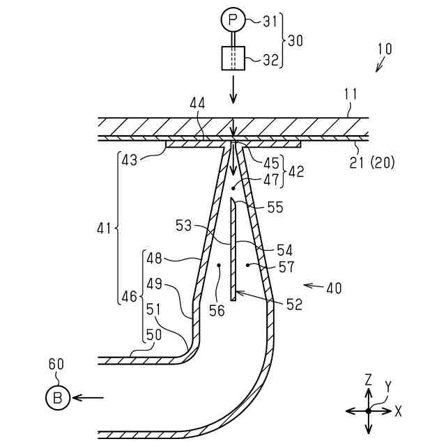 水流帯電法を用いて濾材に電荷を付与する装置(以下、水流帯電装置)は、ノズルから噴射された水が濾材の内部を通過する際に発生する静電気を利用して濾材を帯電させる。