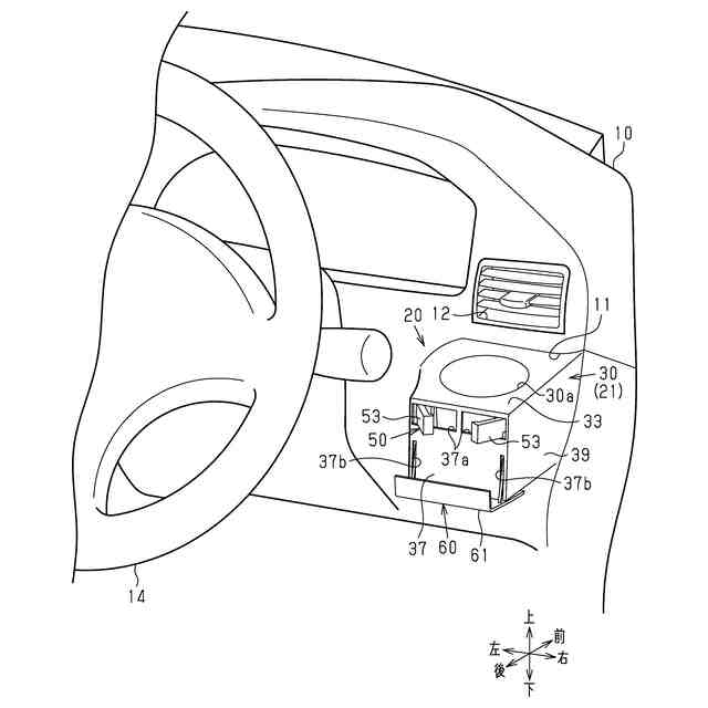 特許文献1には、車両のダッシュボードに設けられたオーディオ装置から突出して電子機器を保持するホルダ装置が開示されている。オーディオ装置は、車室内に露出する意匠部と、ダッシュボードの内部に配置されていて車室内に露出しない本体部とを備えている。