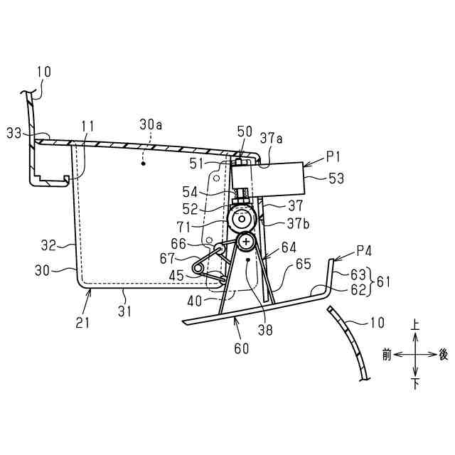 前記第1格納位置に位置する前記一対の保持部の各々の外面は、前記基部の外面と面一であり、