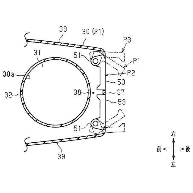 前記第2格納位置に位置する前記支持部の前記一般部の外面は、前記基部の外面と面一である、