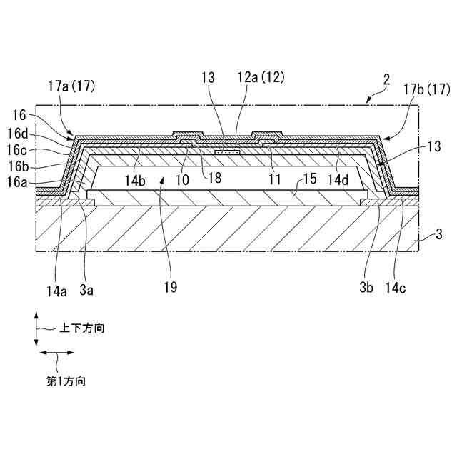 本開示に係るボロメータアレイが備えるボロメータの変形例の第3電極を含む模式的な縦断面図である。