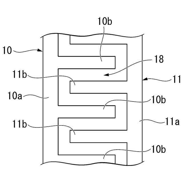 本開示に係るボロメータが備える電極間領域を含む模式的な平面図である。