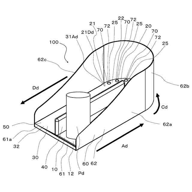 【解決手段】Uターン押出収納器100は、Uターン押出収納板50と、カバー部材60とを備えており、Uターン押出収納板50はカバー部材60の底面パネル部61に対して載置するものであり、Uターン押出収納板50は、カーブ路部20の内側カーブ路22と外側カーブ路に夫々複数の孔部25を設けており、カバー部材60の底面パネル部61は、Uターン押出収納板50を載置した際に発生する空間内に、且つ複数の孔部25と対向する位置に対して、夫々回動補助部70を設けており、回動補助部70は、Uターン押出収納板50を支持する保持器と、保持器内部に収納し、且つUターン押出収納板50の複数の孔部25から一部分が突出する球状のメイン転動球72とを設けている。