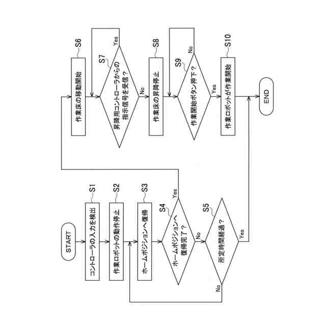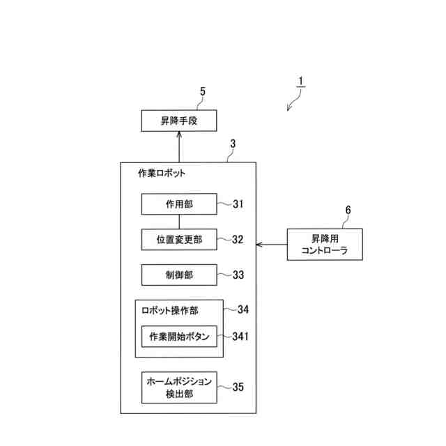 かかる構成によれば、作業部が作業中に本体部を昇降させようとしても、本体部が昇降せず且つ前記作業部が前記作業を停止するため、作業者等が本体部を昇降させるか作業部を操作するかを確認することができ、これにより、操作ミスによる損傷を防ぐことができる。