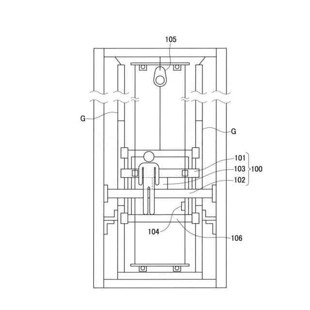 この作業装置100は、ガイドレールGの位置決め(いわゆる芯出し作業)の際には、昇降路の上部に配置された揚重機105に吊り下げられた作業床106の上に設置される。そして、揚重機105が作業床106を昇降させて作業床106の上下方向の位置を変更し、この変更した位置に作業床106が停止した状態で作業装置100がガイドレールGの自動位置決め(芯出し作業)を行う。