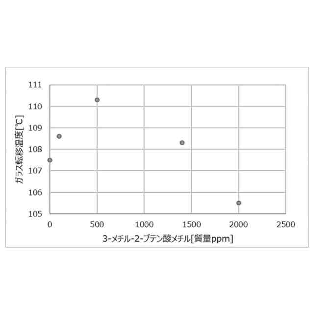 実施例で調製した組成物のメチルブテン酸メチルの濃度とキャスト板の5%重量減少温度との関係を示すグラフである。