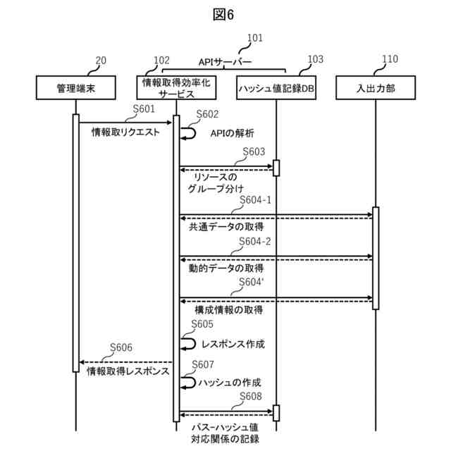 【解決手段】ハッシュ値記録データベース103は、リソースの共通データのハッシュ値を記録し、情報取得効率化サービス102は、ハッシュ値記録データベース103に記録された共通データのハッシュ値を参照して、構成情報を取得する対象の複数のリソースを共通データのハッシュ値が同一のグループにグループ分けし、各グループの共通データを取得し、各リソースの動的データを取得する。