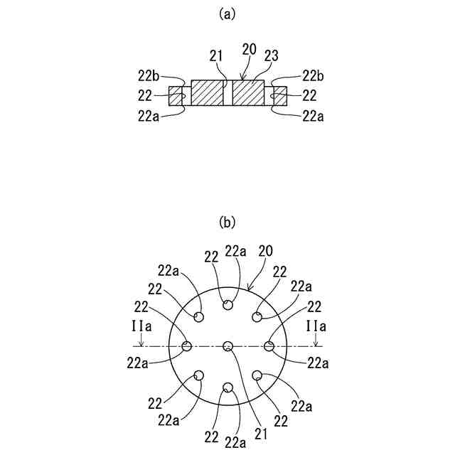 (3) 上記(1)のガス発生器においては、前記第1仕切部材は、前記第1仕切部材の前記中央部よりも前記径方向の外方かつ前記第1貫通孔よりも前記径方向の内方において前記軸方向の一方側に開口するとともに前記軸方向の他方側に開口するように前記第1仕切部材を貫通し、かつ前記ガス発生剤が燃焼することによって発生した前記ガスが通過するように設けられる第2貫通孔を複数有し、前記第2貫通孔は、前記軸方向から見たとき、前記第1貫通孔よりも小さいことが好ましい。