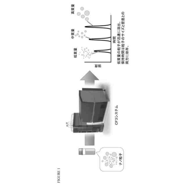 現在、ナノ粒子のサイズおよび形状の特徴づけを行なうにあたっては、電子顕微鏡法および動的光散乱法(dynamic light scattering、以下「DLS」)が使用されている。特にDLSは、ナノ医薬の分野において粒子径分布を調べるために一般的に用いられている。非対称フロー、遠心、電気、熱、および磁気といった様々な場を使用するフィールドフローフラクショネーション(field-flow fractionation、以下「FFF」)などの分級方法が、近年、ナノ粒子の正確なサイズ分布を調べる目的で大いに注目されている。FFF技術の中でも、非対称フローフィールドフローフラクショネーション(以下「AF4」)は、多分散混合物中にサイズの異なる粒子が存在している場合に、当該粒子の拡散係数(すなわち、流体力学的なサイズ)に基づいてナノ粒子を分級することにより、高い分解能を発揮する。AF4は、ナノ医薬のサイズ、安定性、および薬物放出能力を調べる目的で使用されることが増えている。これに対して、沈降フィールドフローフラクショネーションとして知られる遠心FFF(以下「CF3」)は、粒子のサイズ、および粒子と溶出流体との密度差に基づいて粒子を分離することができる。