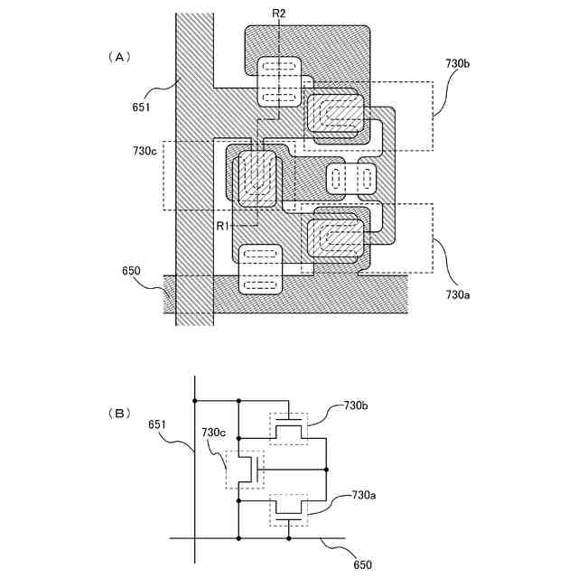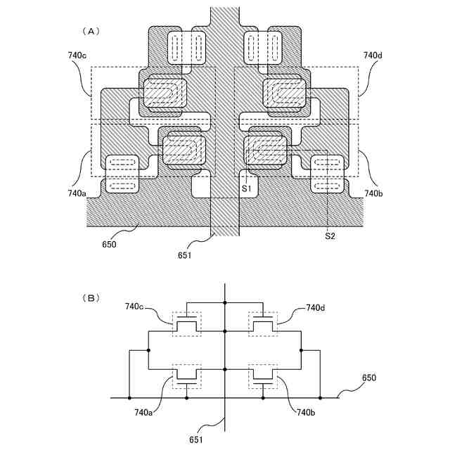 れ、画素電極がマトリクス状に配列する画素部と、該画素部の外側領域に酸化物半導体で