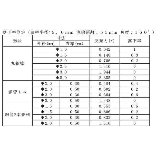 (b)前記複数の部位で弧状に曲げた弧のうち、交差点と対向する部位の弧の曲率半径が6~17mmであり、