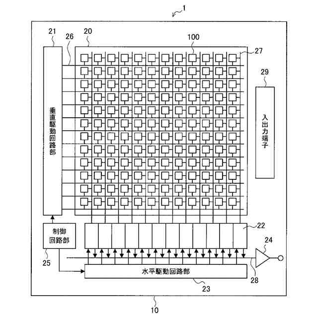 前記半導体基板上に行方向及び列方向に沿ってマトリックス状に配列し、入射された光に対して光電変換を行う、複数の撮像素子と、