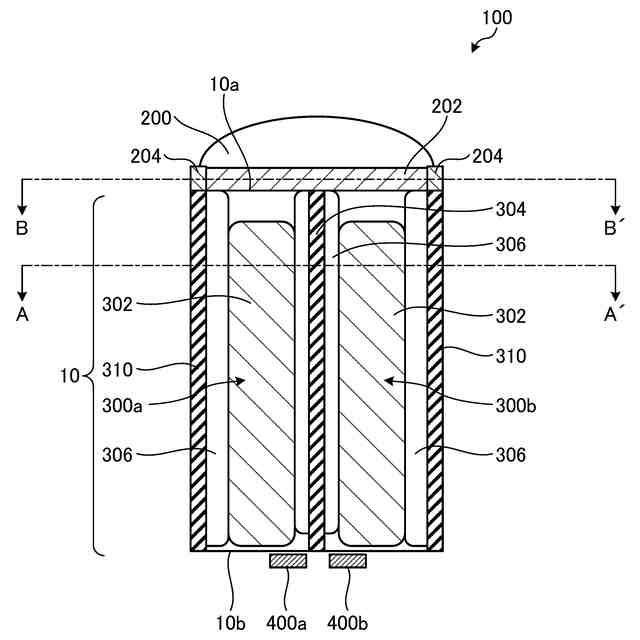 本開示の第12の実施形態に係る撮像素子100の両面及び断面を示す説明図(その1)である。