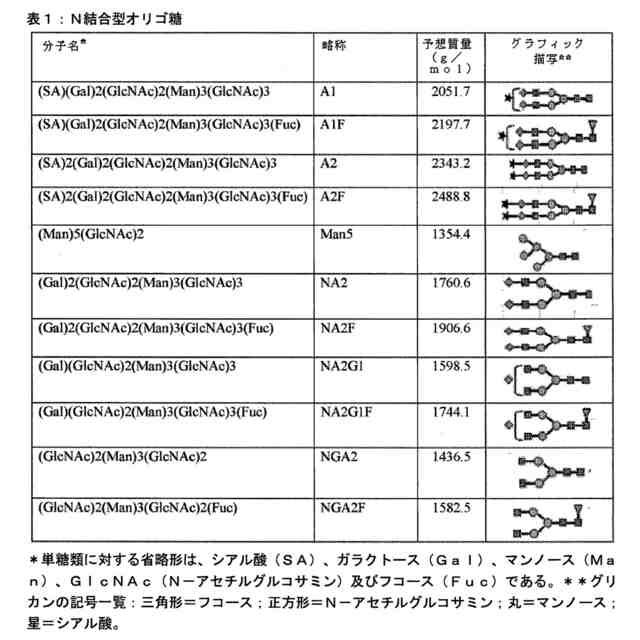 一実施形態では、糖タンパク質は、トラップ分子、例えば、リロナセプト(例えば、米国特許第6,927,004号に開示される、IL1-トラップ)、アフリベルセプト(例えば、米国特許第7,087,411号に開示されるVEGF-トラップ)、コンバセプト(conbercept)(例えば、米国特許第7,750,138号及び第8,216,575号に開示される、VEGF-トラップ)ならびにエタネルセプト(例えば、米国特許第5,610,279号に開示される、TNF-トラップ)である。一実施形態では、糖タンパク質の全N-グリカン種の総量の≧10%(w/w)は、A1 N-グリカンである。