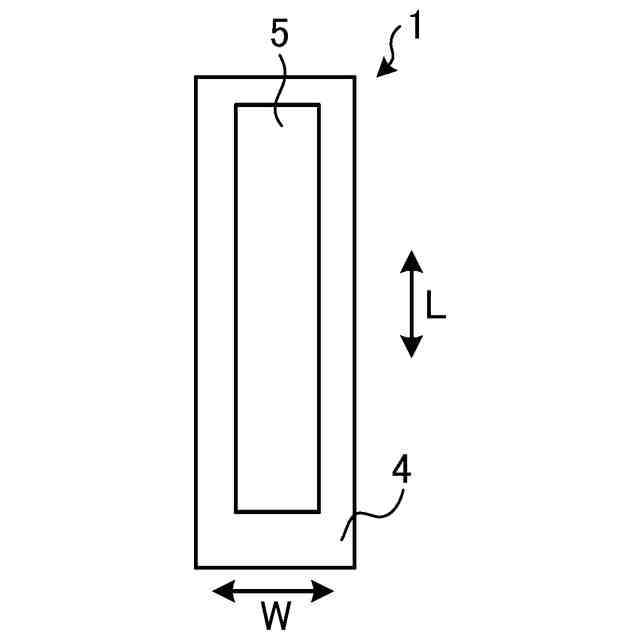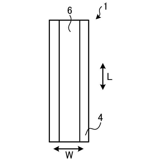 図1A~図1Cに示す例において、セル1は中空平板型で、細長い板状である。図1Bに示すように、セル1の全体を側面から見た形状は、たとえば、長さ方向Lの辺の長さが5cm~50cmで、この長さ方向Lに直交する幅方向Wの長さが1cm~10cmの長方形である。このセル1の全体の厚み方向Tの厚さは、たとえば1mm~5mmである。