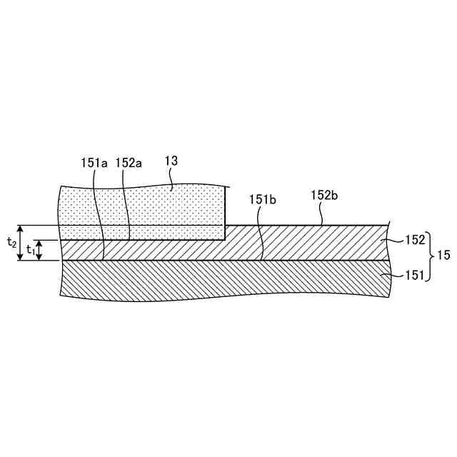 前記第2外面が位置する前記被覆層の厚みは、前記第1外面が位置する前記被覆層の厚みよりも大きい、または、前記第2外面の表面粗さは、前記第1外面の表面粗さよりも小さい