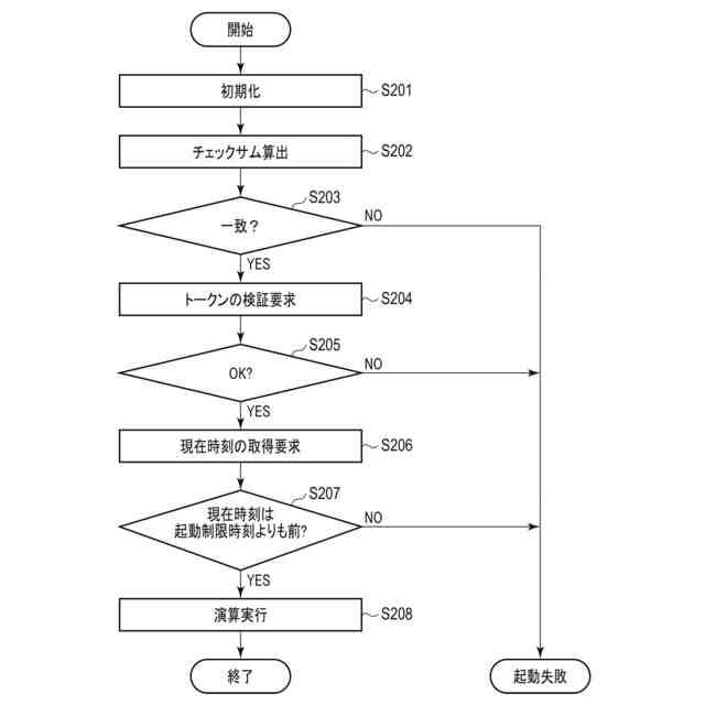 生成された第1の認証情報及び前記起動制限時刻を前記第2プログラムに付与する手段、