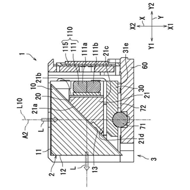 特許文献1には、光学要素と、光学要素ホルダと、中間ベースと、底ベースとを備えたアクチュエータが記載されている。光学要素は、光学要素ホルダに保持される。中間ベースは、光学要素ホルダを支持する。中間ベースは、底ベース上に配置される。中間ベースは、円弧状の溝を有する。底ベースは、円弧状の溝を有する。中間ベースの溝及び底ベースの溝は、回転軸上に中心を有する円上に配置される。中間ベースの溝と底ベースの溝との間に複数のボールが配置される。中間ベースを底ベースに対して回転させることによって、光学要素が回転する。