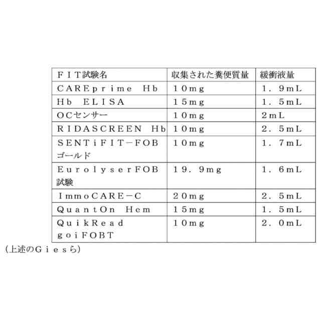 同様に、分析のための糞便試料の質量は特定の質量に限定されないが、特定の実施形態では、糞便試料の質量は、FIT試料収集装置を使用して収集可能な試料の質量である。したがって、特定の実施形態で、少量の糞便試料は、100mg未満、好ましくは50mg未満、好ましくは20mg未満の質量である。