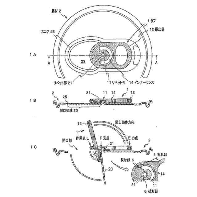 飲料、食品用途に使用される包装容器の1つとして、飲料缶、缶詰等の食品缶が広く流通している。現在、これらの缶の蓋部(エンド)には、缶切り等の器具を使用せずに手で容易に開缶することのできるイージーオープンエンド(EOE)を用いた、いわゆるプルトップ(pull-top)方式が広く用いられており、タブが蓋本体から外れないステイオンタブ式(Stay-on tab,SOT)が、安全性及び環境問題の面から普及している。