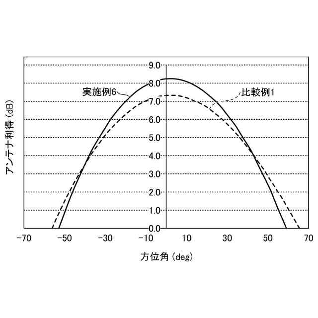 実施例6と比較例1に関するアンテナ利得の比較を示すグラフである。