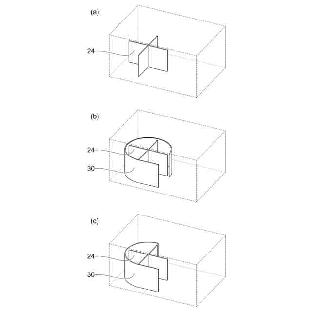 (a)はケーシングの無いケース、(b)はフィンの回転円の中心角270°の円周を覆うケーシングを配置したケース、(c)はフィンの回転円の中心角180°の円周を覆うケーシングを配置したケース、の模式図である。