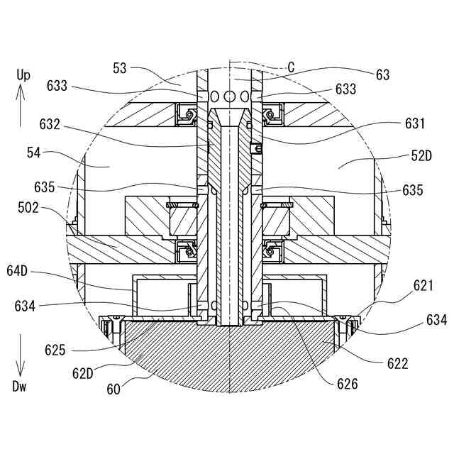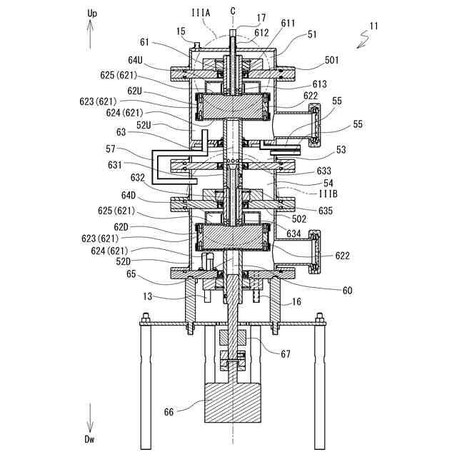 前記二酸化炭素吸収溶液が内部に拡散可能に構成され、前記二酸化炭素吸収塔の内部に配置され、駆動力源が出力する駆動力により回転する回転体と、
