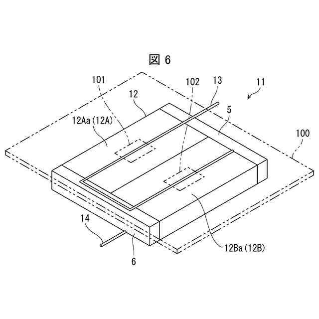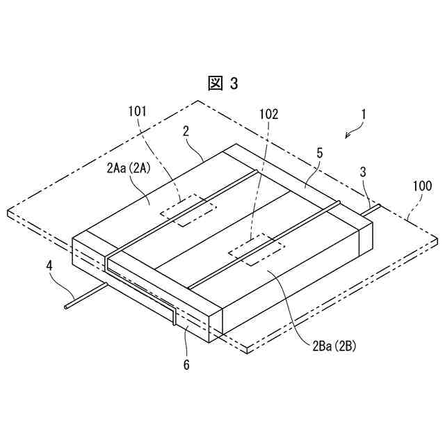 前記一対の電極の中の一方の電極は、前記第1領域の表面および前記第2領域の裏面を通るように配置され、