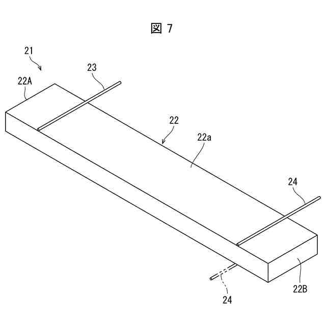 前記一対の電極の中の一方の電極は、前記シート体の長手方向の一端部側の表面あるいは裏面に配置され、