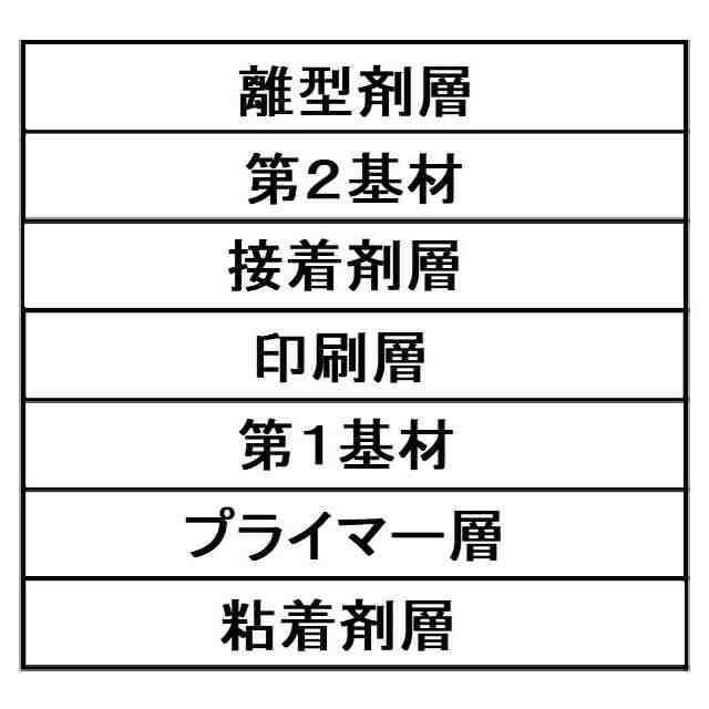 (5)粘着剤層と第1基材の間にプライマー層が配置されており、第1基材と印刷層の間に接着剤層が配置されており、第2基材の印刷層が存在しない側に離型剤層が配置されていることを特徴とする、(1)又は(2)に記載の粘着テープ。