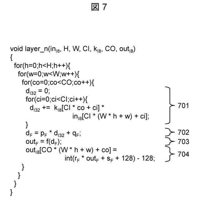 当該ループ処理は、前記畳み込み処理、前記浮動小数点化処理、前記活性化関数処理、及び、前記整数化処理を含み、