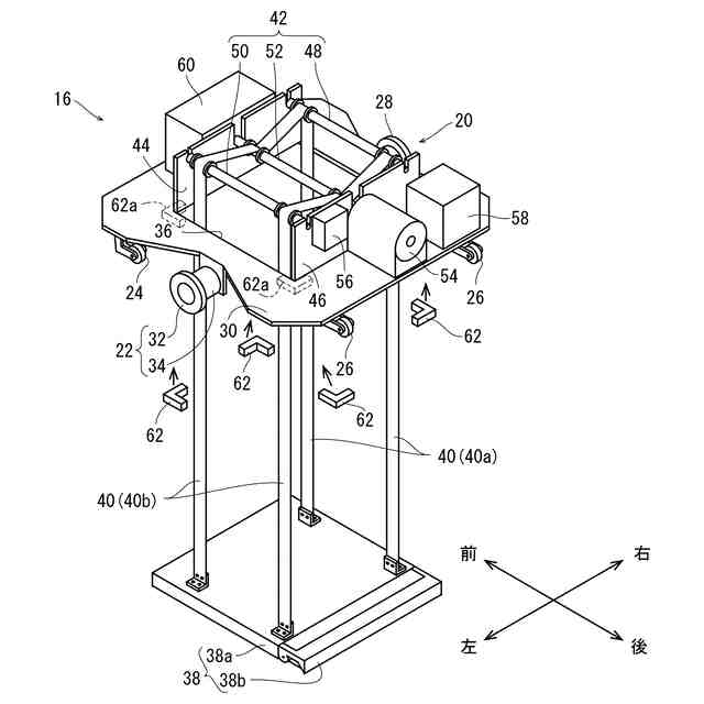 しかし、昇降手段はカセットを4本のベルトで支持するとともに4本のベルトを巻き取る巻き取り部によってカセットを昇降させる構成となっており、カセットを上昇させて走行する際に、カセットが揺動してカセットに収容された物品が損傷するおそれがあるという問題がある。