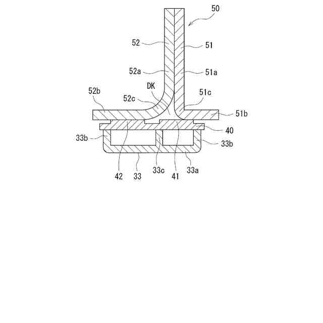 前記第1保持部材は、前記第2保持部材に対向する第1対向部と、前記パッド部材に面する第1保持面部と、前記第1対向部と前記第1保持面部との間を繋ぐ第1屈曲部とを有し、
