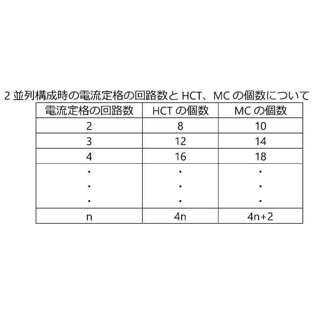 従来は、コンデンサCの前後に各電流定格専用の電流計測装置と開閉器とリアクトルを有している。このため複数の電流定格を有する回路構成とする場合、電流定格回路の数が増えるにしたがって部品点数が増えてしまう。表1に単機構成時(電力変換装置が1つ)の場合の部品点数を示し、表2に2並列構成時(電力変換装置が2つ)の場合の部品点数を示す。表1、表2に示すように、複数の電流定格回路を有すると部品点数が多くなり装置のコストが高くなる。