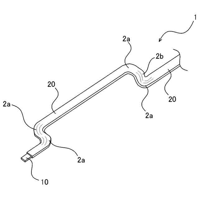 ここで、本件出願人は、電池パックを小型軽量化するために、配索材を丸形電線から板状のバスバー電線に置き替えることを検討している。このようなバスバー電線は、特に大型の電池パック内に配索する場合に長尺となると共に配索態様に合わせて所定箇所に屈曲部を有したものとなる。このような事情から、バスバー電線は、配索状態に応じた形状となるようにプレス加工によって切り出すことには限界がある。このため、バスバー電線は、直線状に製造した後に、フォーミング加工によって所定の曲げを実現することが好ましい。