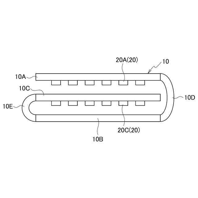 図1B又は図2Bに示す基材を折り曲げた後の状態を示す側面図である。