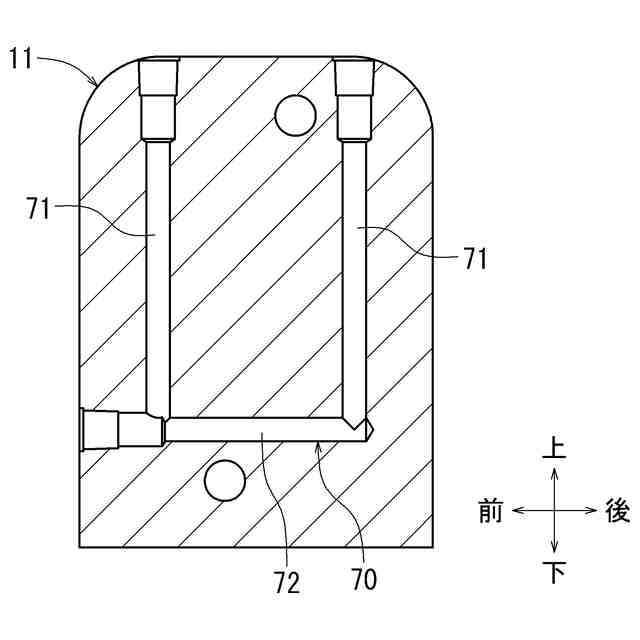 1サイクルの鋳造等の成形に要する時間を短縮したい場合、例えば、金型自体の冷却時間の短縮も有効である。しかし、金型内のキャビティ部の周辺部とガス抜き通路の周辺部との温度差が拡大することにより、金型の変形が大きくなり、金型の分割面から溶湯が噴き出しやすくなる。このため、製品成形サイクルのハイサイクル化(1サイクルの成形に要する時間の短縮化)が難しい。