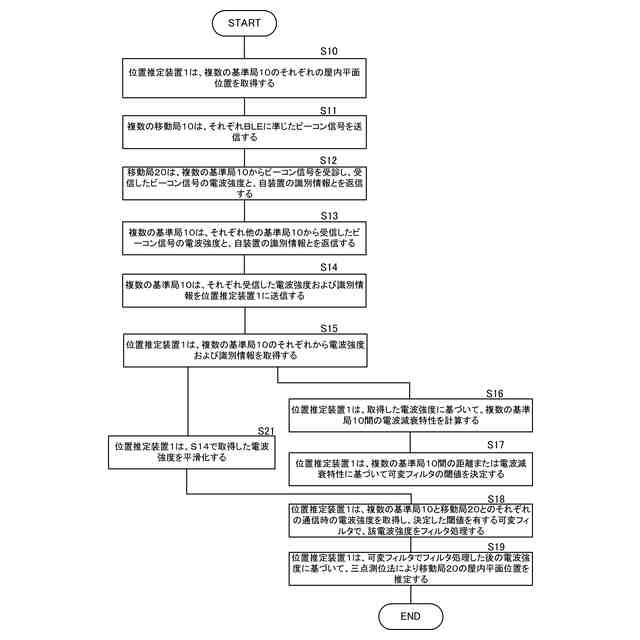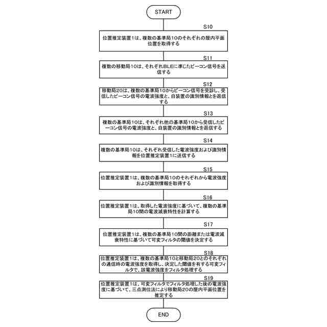 【解決手段】位置推定装置は、無線通信機能を有し、屋内のうち高さ方向に異なる複数の階層にそれぞれ設置されている複数の基準局の位置情報を取得し、前記複数の基準局と移動局とのそれぞれの通信時の電波強度を取得し、前記電波強度に基づいて、前記移動局の前記屋内における前記階層の位置を推定する、演算部を備えたことを特徴とする。