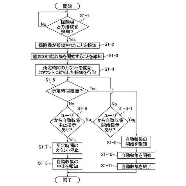 従来の集塵ステーションは、掃除機が集塵ステーションに接続されると、接続を検知して自動で塵埃の回収を開始する。特許文献1では、集塵装置の電動送風機の駆動を許可する時刻帯をユーザが任意に設定できることが開示されている。一方で、自動収集を許可する時刻帯以外の時刻では自動収集は行われない。例えば、ユーザの帰宅時間が遅くなり掃除を行う時間が遅くなった場合、掃除機を集塵ステーションに接続した時刻が自動収集を許可する時刻帯を過ぎていると自動収集は行われず、掃除機のゴミを回収したいと思っていても自動収集がされず、自動収集させたい場合は、自動収集を許可する時刻帯の設定を変更する必要があった。このように、従来の特定の時刻帯に自動収集を許可するという方法では、ユーザのフレキシブルな生活習慣に対応することが難しかった。