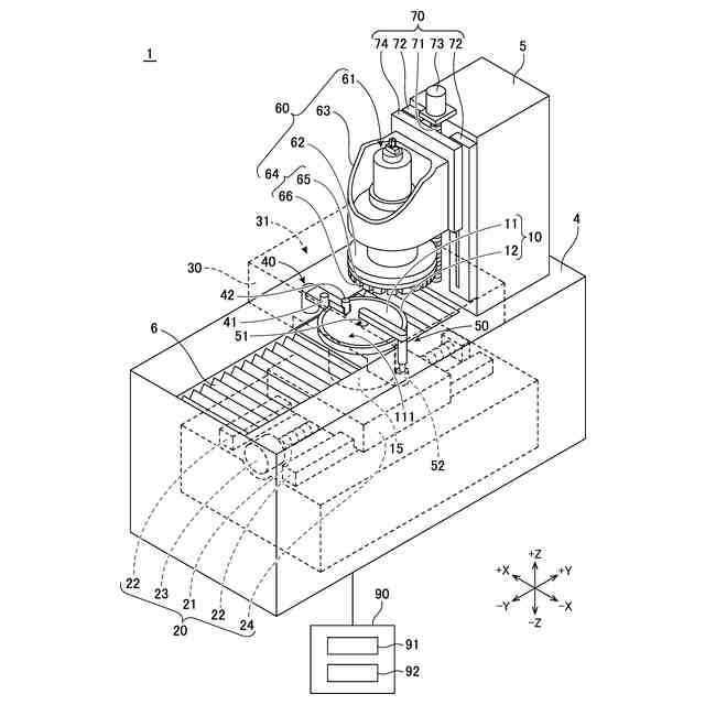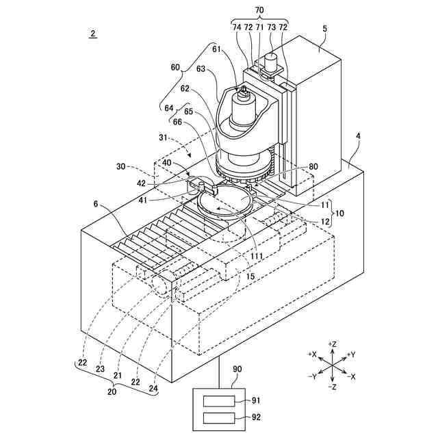 粗研削砥石で研削する粗研削機構と、粗研削砥石より砥粒径が小さい仕上げ研削砥石で研削する仕上げ研削機構と、を備える研削装置が知られている(特許文献1参照)。